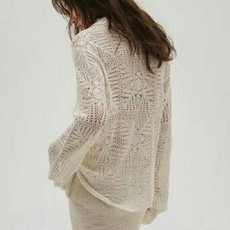華奢なコットン糸を使用し、南インドでひとつひとつ丁寧に手編みされたかぎ針ニットシャツ。