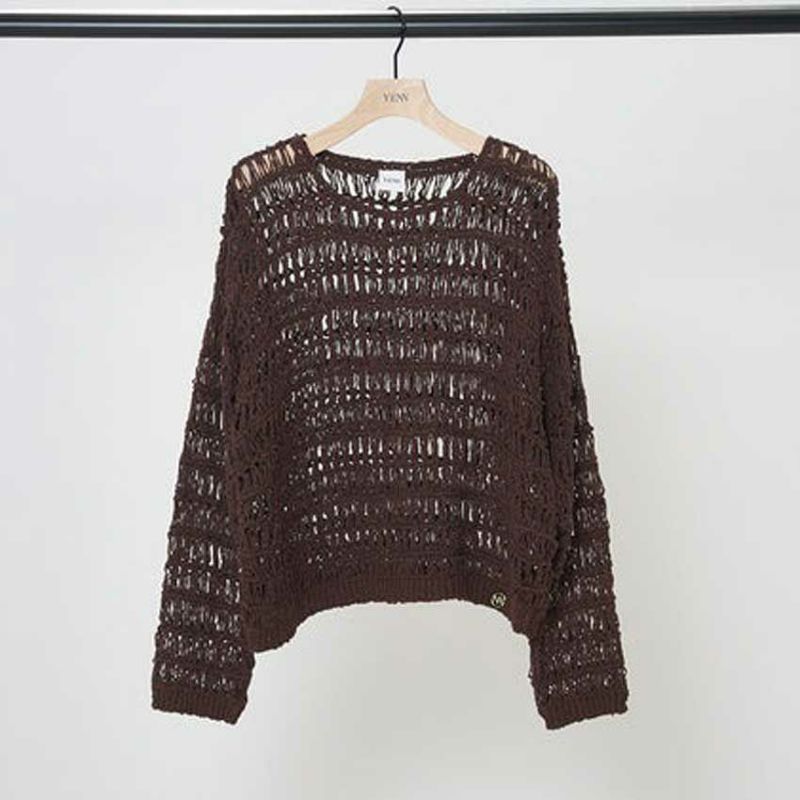 機械編みのパーツを、かぎ針編みで繋ぎ合わせる手の込んだ透かし柄で、ボヘミアンムード漂うニットプルオーバー。