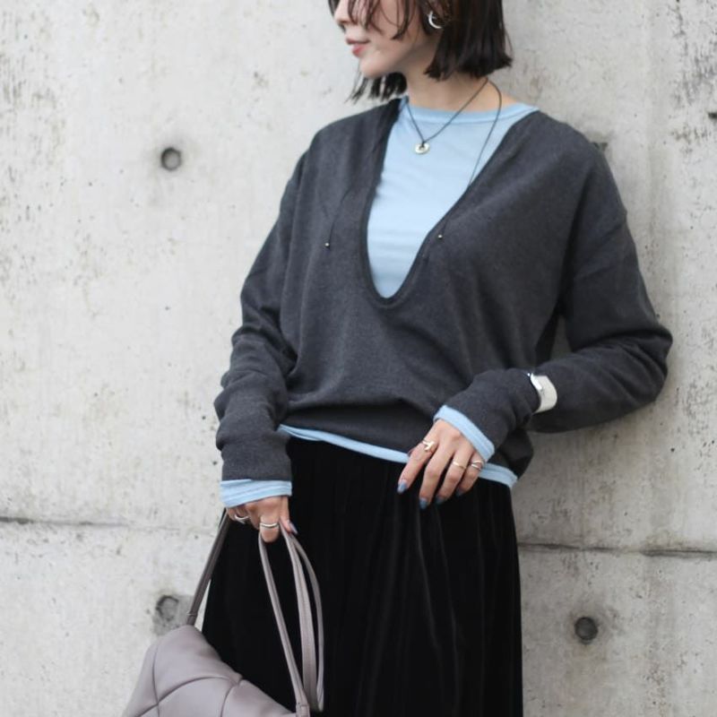 姉妹ブランドのTODAYFULでも人気の高い深めのVネックニット。
