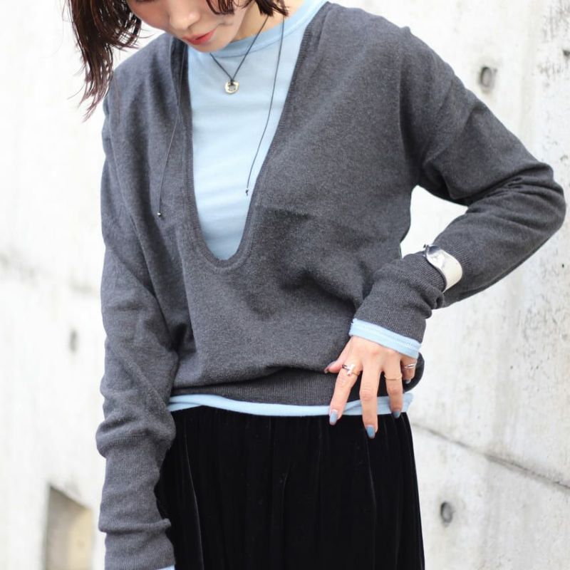 anuke/アンヌーク 深Vネックニット 62420506 ディープスリット Deep Keyneck Knit 薄手 スキッパーネック スリット