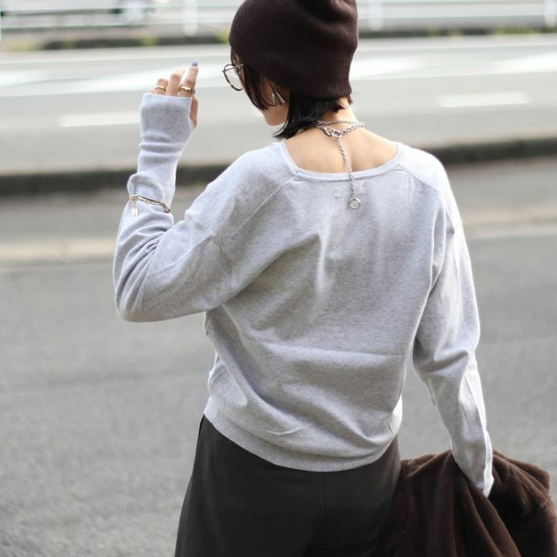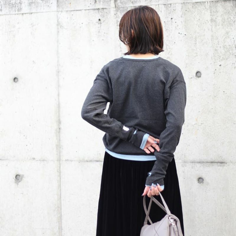 柔らかく薄手なニットを採用し重ね着に取り入れやすい作りに上げてます。