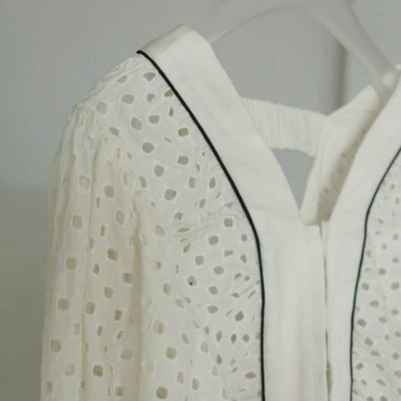 カットワークから程良く肌が見えて、ほっこりし過ぎず、垢抜け感あるレーストップスです。