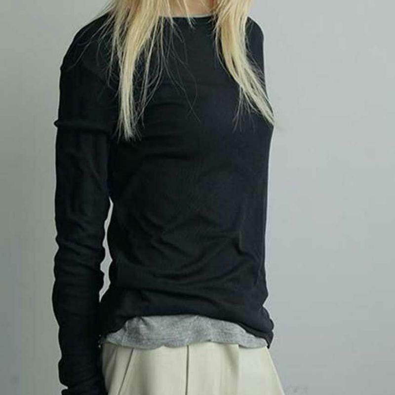 薄手の透け感のあるリブ素材を使用したロングTシャツ。