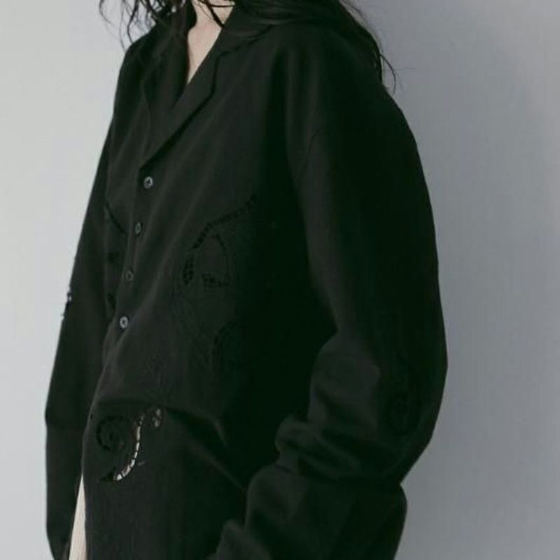 カットワーク刺繍が印象的なインド製の開襟シャツ。