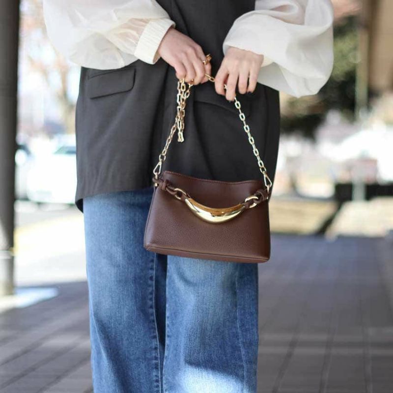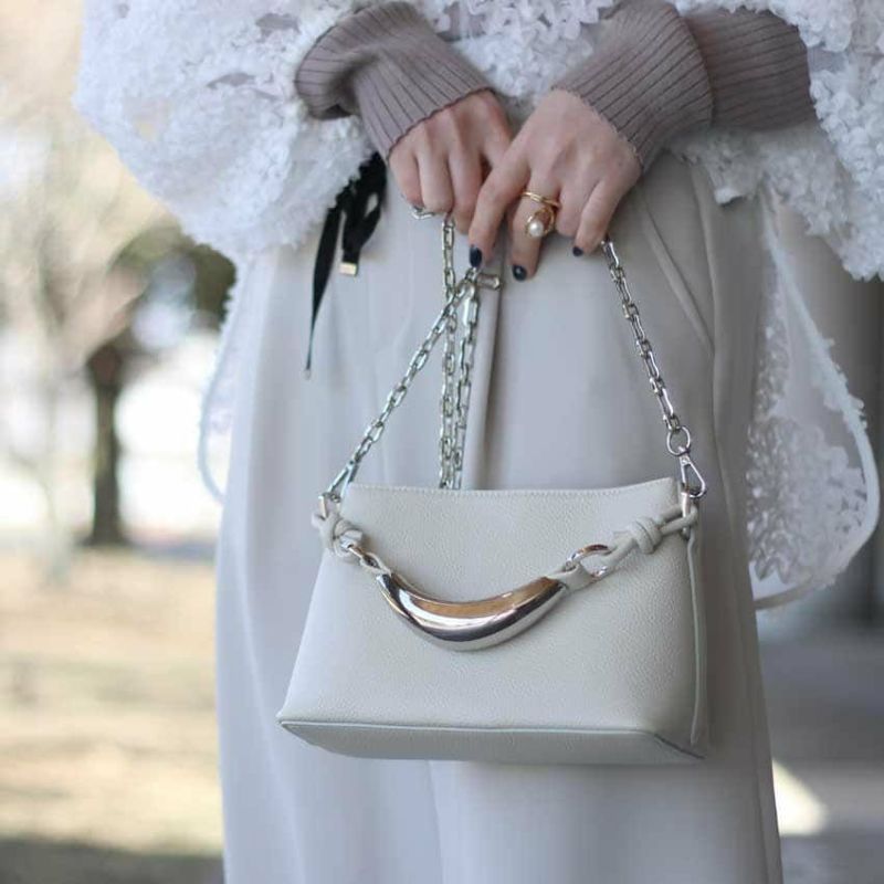 ボクシーなシルエットが印象的な、アクセサリー感覚でコーデに取り入れやすいバッグ。