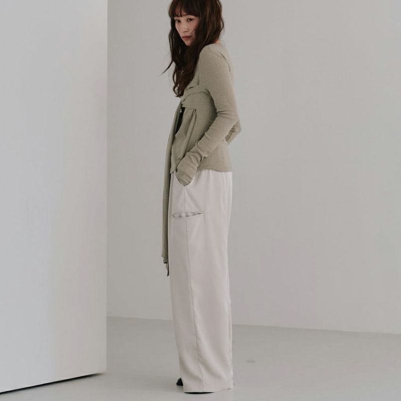 カジュアルなデザインながら、素材の落ち感が生む優雅なシルエットが特徴です。