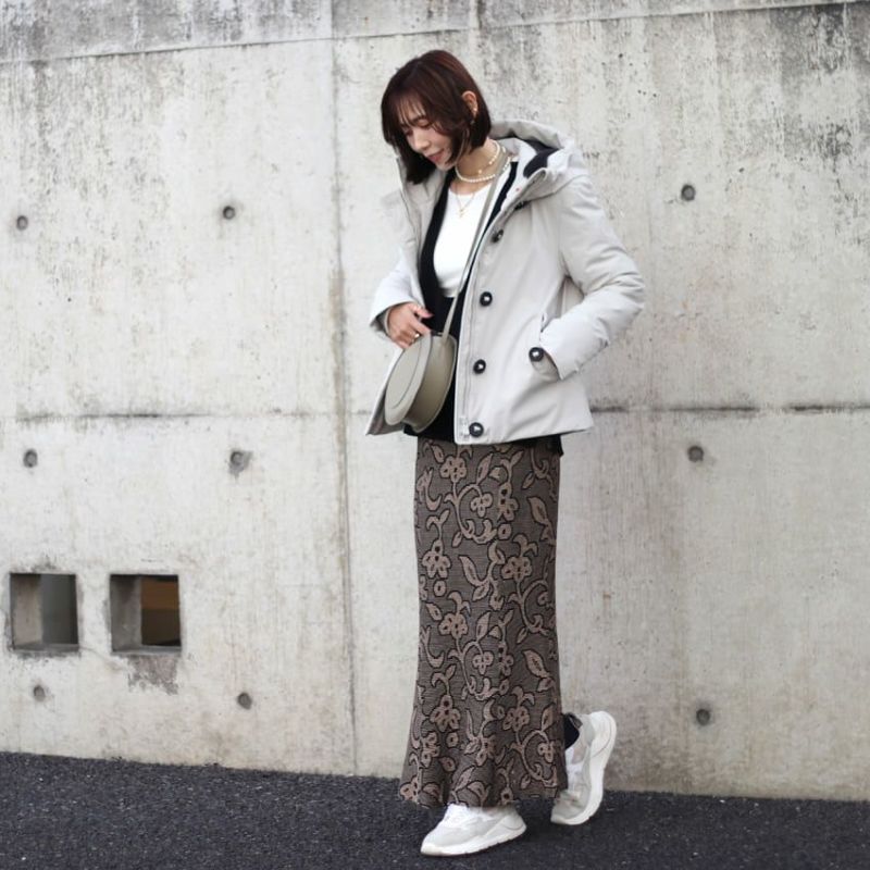 保温性の高いハイネック、ニットリブのインナーカフス仕様。