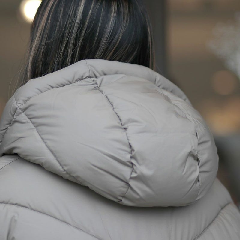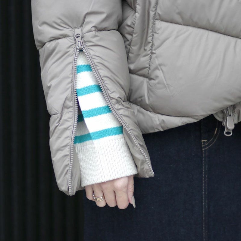また通常のダウンとは異なる斜めに入ったキルティングパターンになっており、太って見えやすいダウンの弱点を解決してくれます。