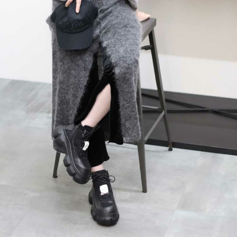 ボリュームのあるコロンとしたソールは、6cmの厚底設計でスタイルアップを叶えつつ、トレンド感のあるモードな重厚さを演出。