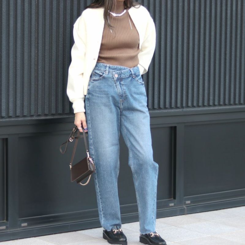 ジップを斜めに入れ、ベーシックなアイテムながら遊び心がありキャッチーな1本に仕上がっています。