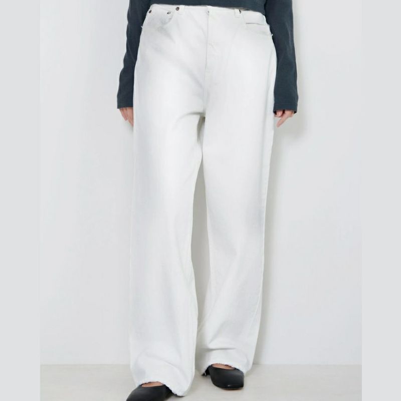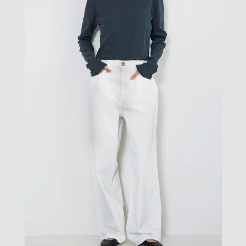少し長めの丈なので、スニーカーにワンクッションさせたり、ローヒールなどに合わせてトレンド感あるスタイリングにしてみるのもおすすめです。