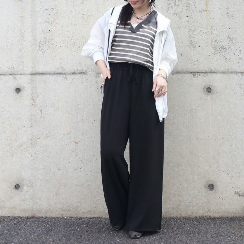 落ち感のある素材はさらりと肌に馴染み、暑い季節も快適な穿き心地です。
