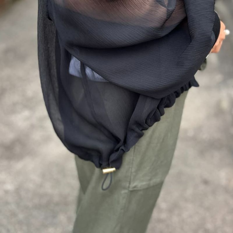 生地は程よい透け感と繊細な縦流れのシボをもつ、シャリシャリとした素材感が特徴の生地。