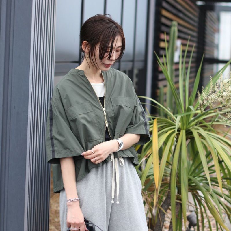 シンプルにもカジュアルにも併せられて、シャツのような襟とブルゾンをミックスしたようなユニークなデザインがポイントです。