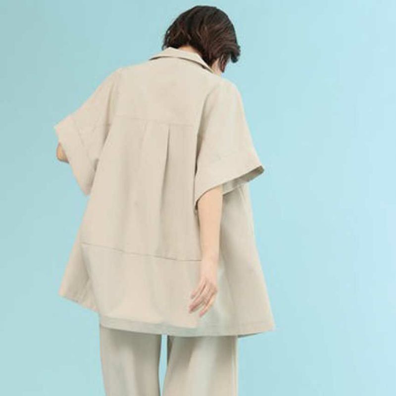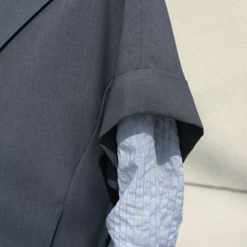 エアリーな質感と着心地、対照的なテーラードのきちんと感が魅力の半袖ジャケット。