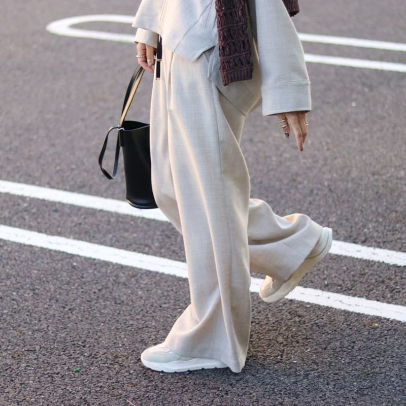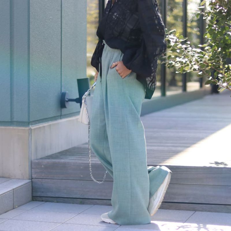 人気のセミワイドストレートで大人なシルエットに。スタイルアップして見える上品なパンツです。