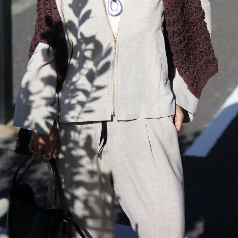 生地感はシワになりにくくナチュラルな表情とソフトでありながら肌離れの良いドライさが特徴の生地。