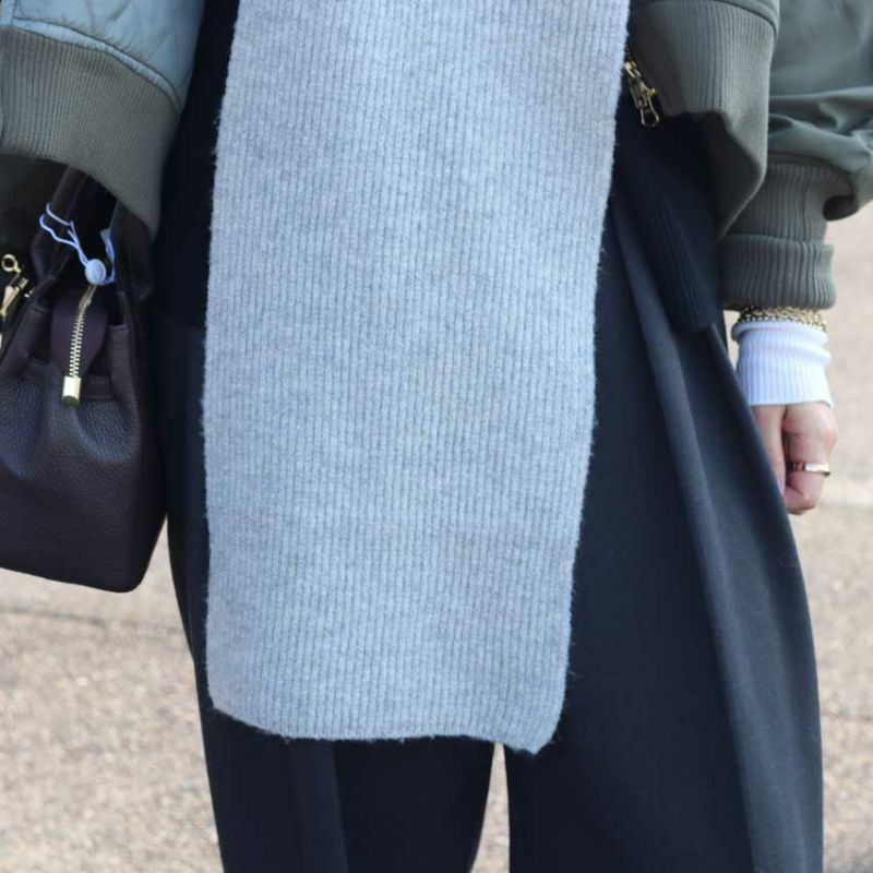 シンプルなコーデにひと巻きプラスするだけで、ぐっと季節感が高まり、こなれた印象を演出。