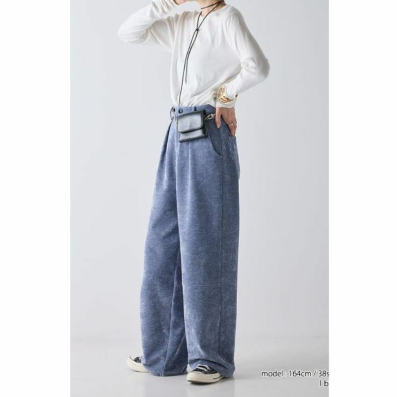 全体的にゆとりのあるオーバーシルエットながら、ウエストはハイライズ仕様。タックを寄せて程よく絞ることで、おなかまわりに締めつけ感がなく、リラックスして着用できます。