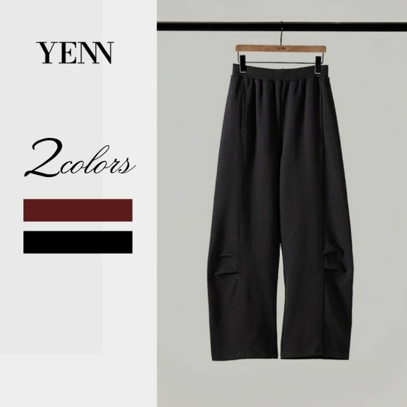 膝に入れたタックが生み出すカーブシルエットが、さりげなくモードな雰囲気をプラス。