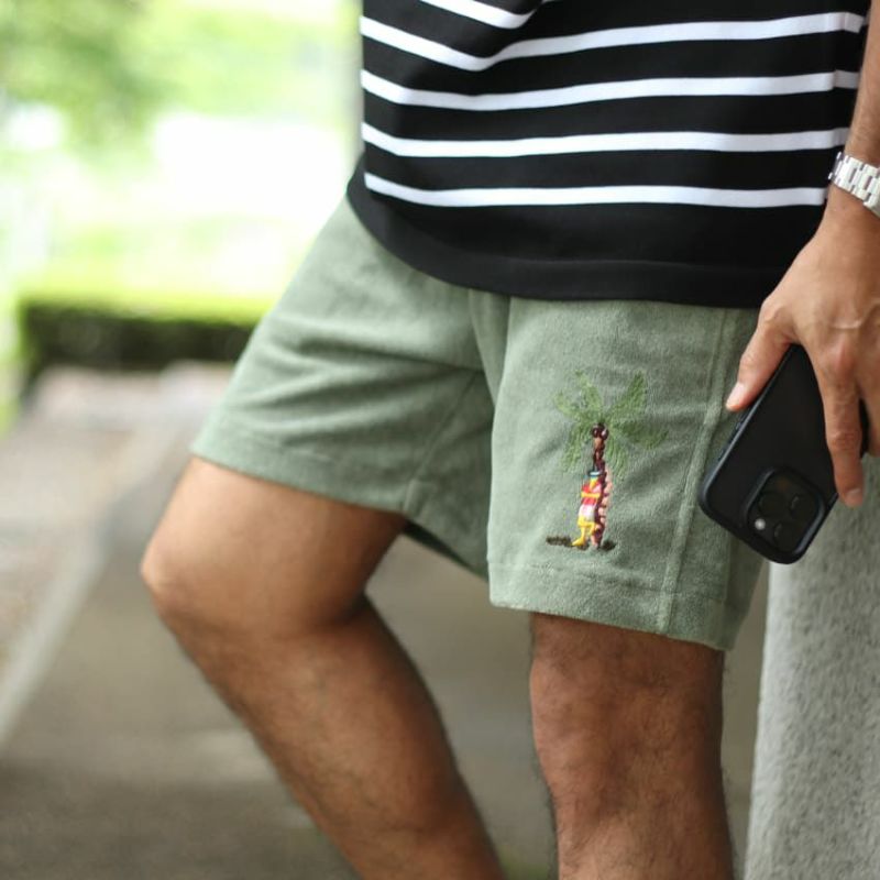 裾に施したトロピカルな刺繍がチルムードを高めるバミューダショーツ。
