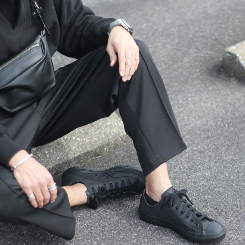 本来はヒール部分には白くコンバースのロゴデザインがプリントされていますが、ロゴもブラックでプリントしており、いい意味でコンバース感を抑えています。