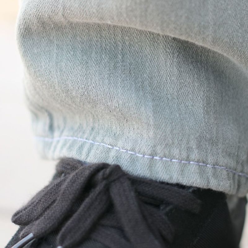 非常に薄く、軽い生地は清涼感があり、真夏に快適に着用していただけるデニムです。
