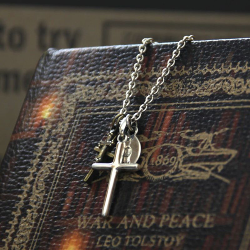 amp japanよりシンプルなシルバークロスのパーツにアンプチャーム、真鍮のクロスチャームがバランス良く組み合わさったネックレスが入荷しました