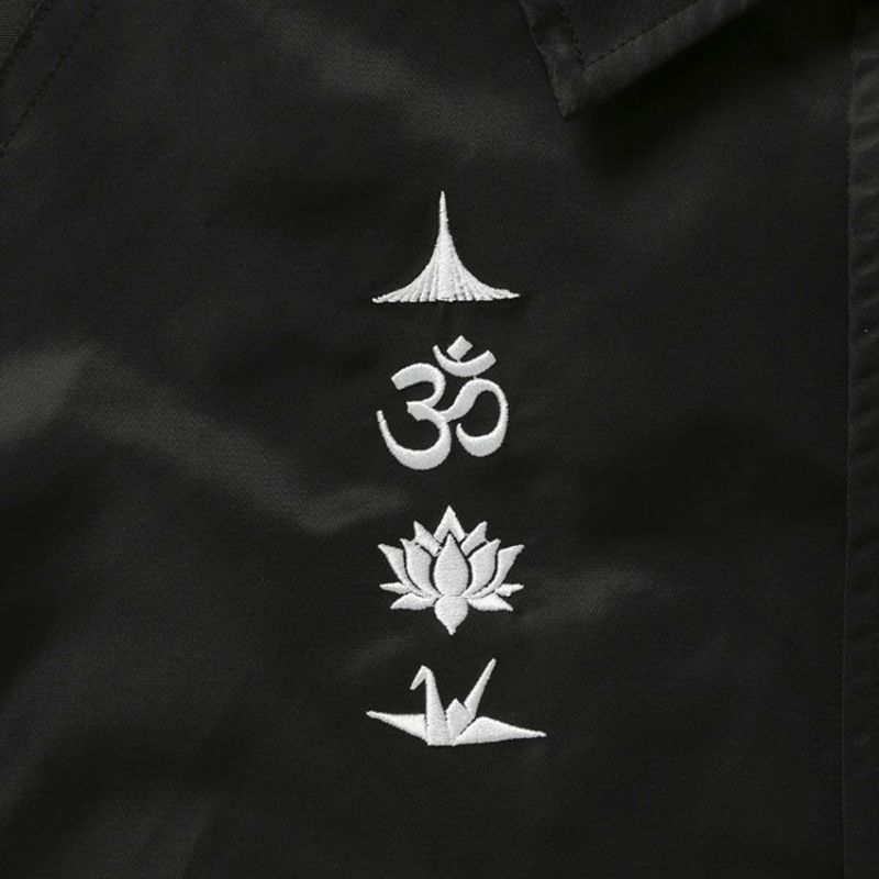 その中で今季のコーチジャケットは、右胸にバングラディッシュのアイコン(ダッカ独立記念塔/オーム/睡蓮/折り鶴)の刺繍が入り、左胸と背にはベンガルフォントのLiberaidersロゴが入るナイロンツイルの1着となっています。