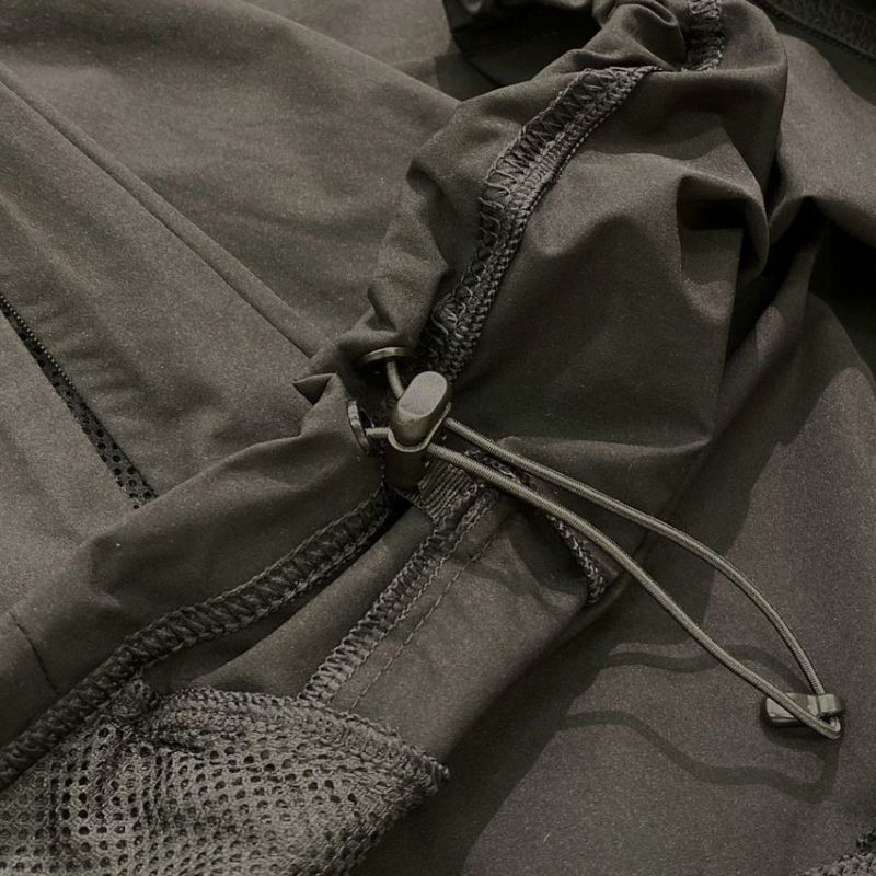 左胸にオーガナイザーポケットとシリコンワッペンを配置、裾はドローコードで絞れ、シルエットを 変化させられます。