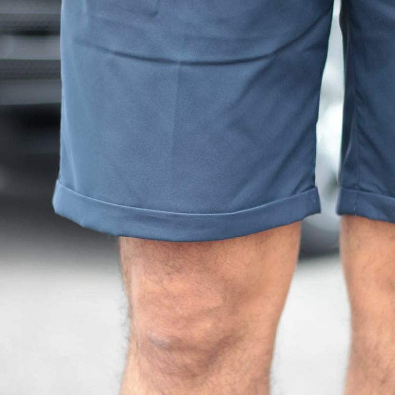 裾は折り返しがされ、タックを入れることで子供っぽく見えやすい短パンもより大人らしい印象に。