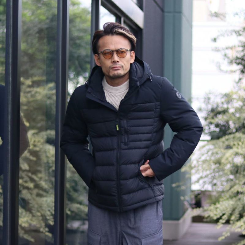 スマートなシルエットながら、窮屈感はないので幅広い体型の方にハマるダウンジャケットです。