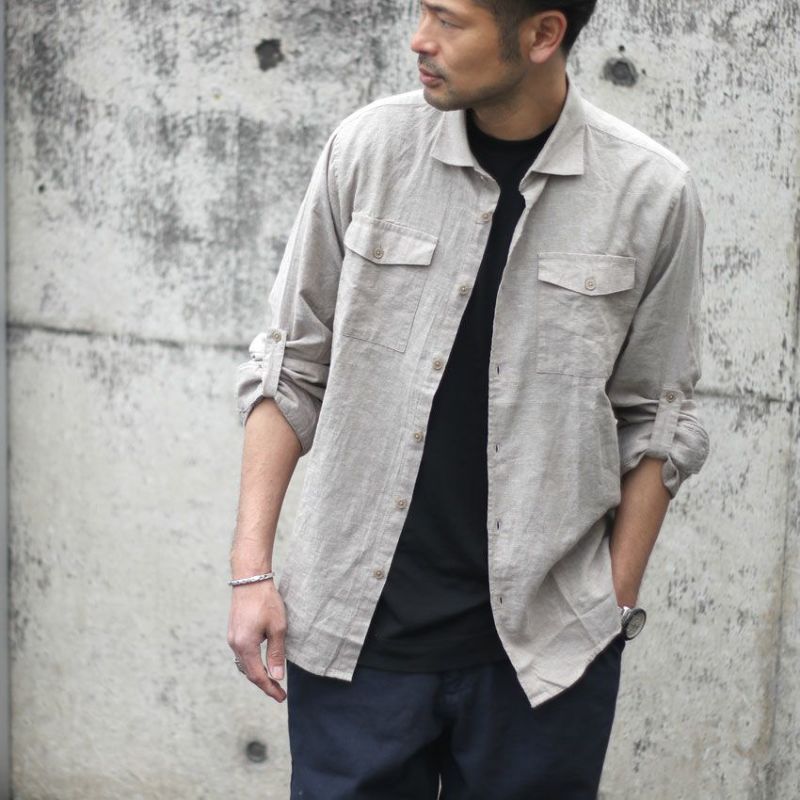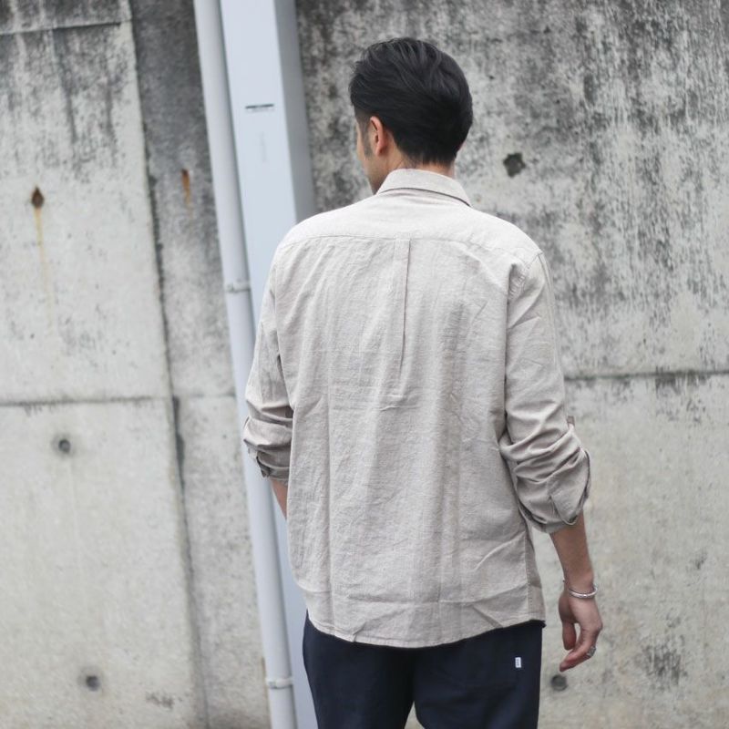 素材はコットンリネンですが、チクチク感のない柔らかい風合いのリネンが快適な着心地を生みます。