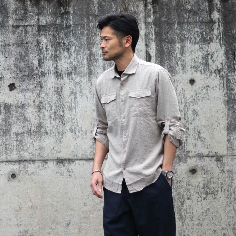 ベストセラーであるスリムフィットのシャツは春夏らしい清涼感のあるリネン素材を使用した1着。