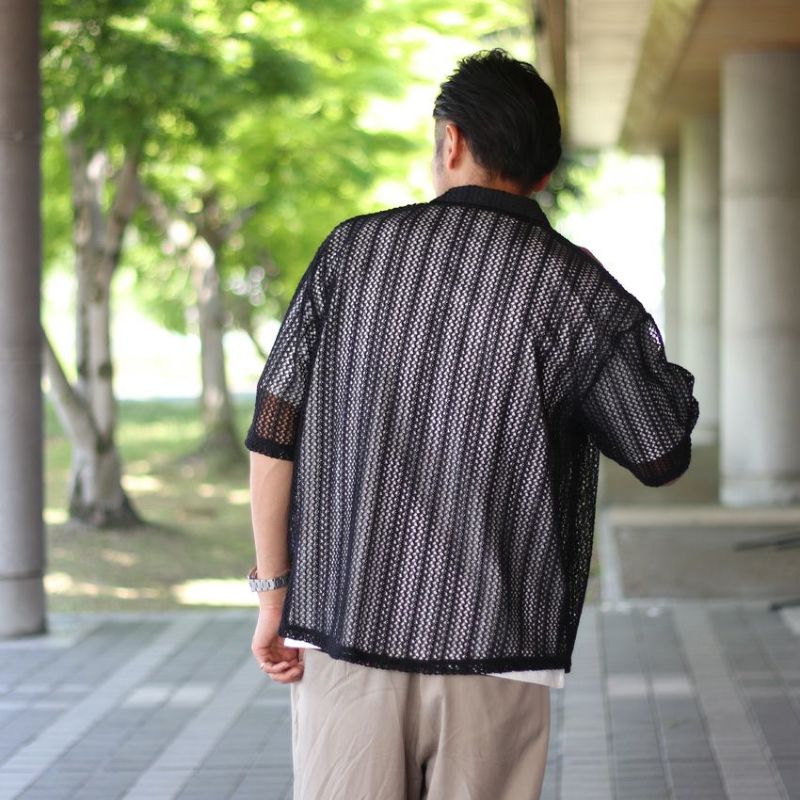 オリジナルの編み立てデザインが映えるメッシュ開襟シャツ。