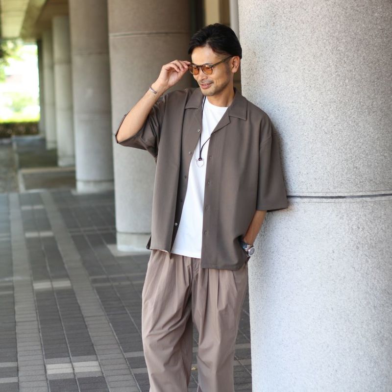 オープンカラーシャツは、小ぶりなボタンや表に出るステッチを極力省いた、ミニマルで洗練されたデザイン。