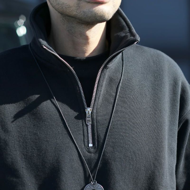 Zipを閉めてスタンドネックとして着用してもお洒落です。