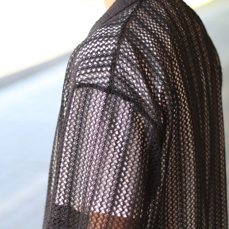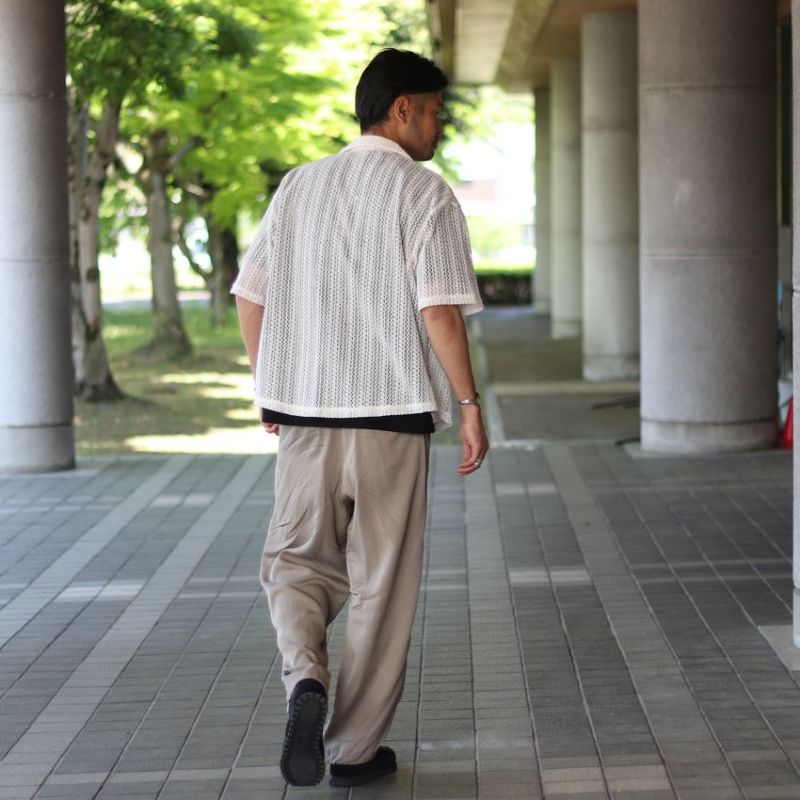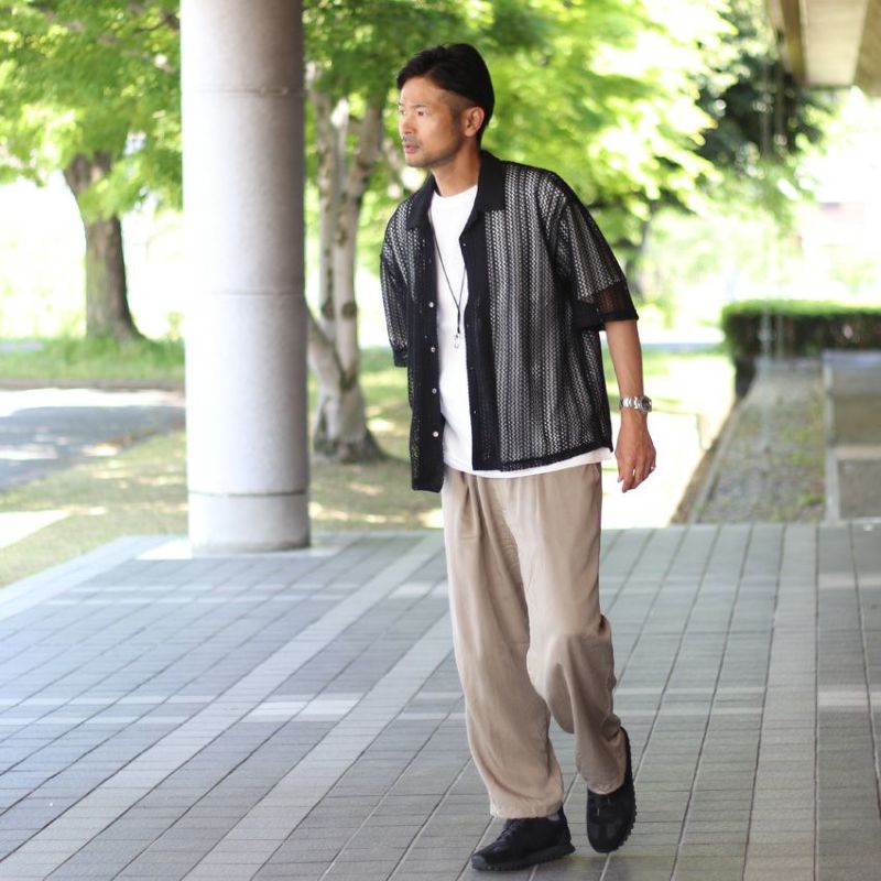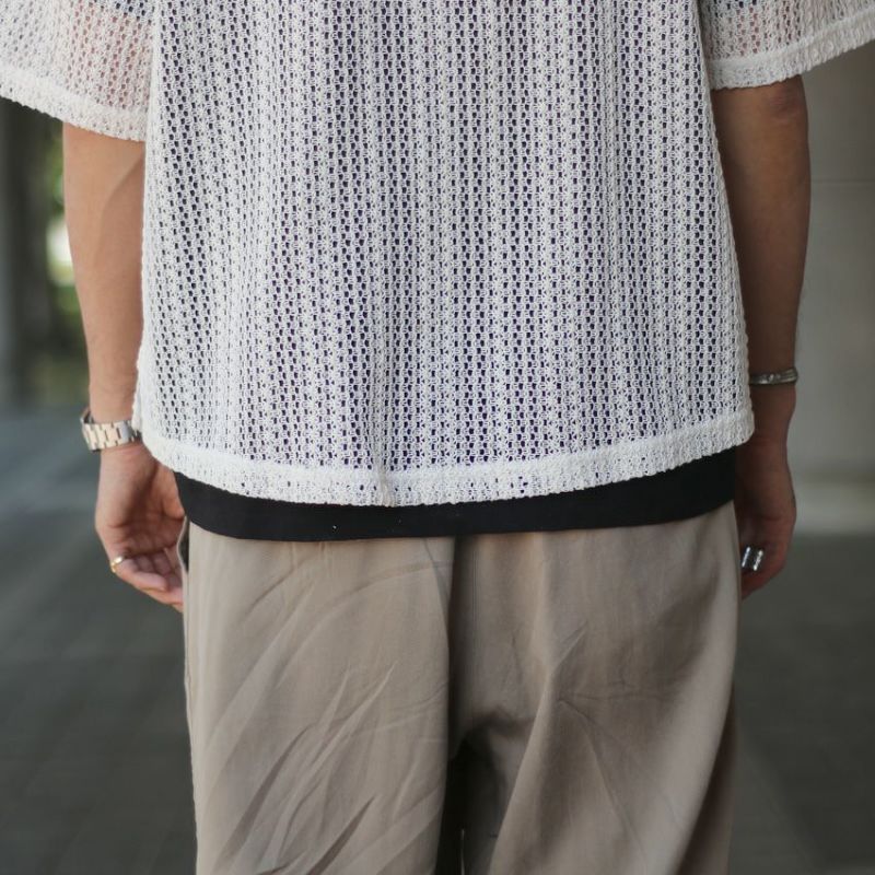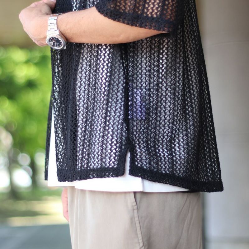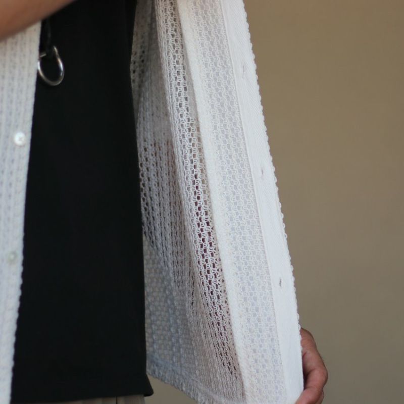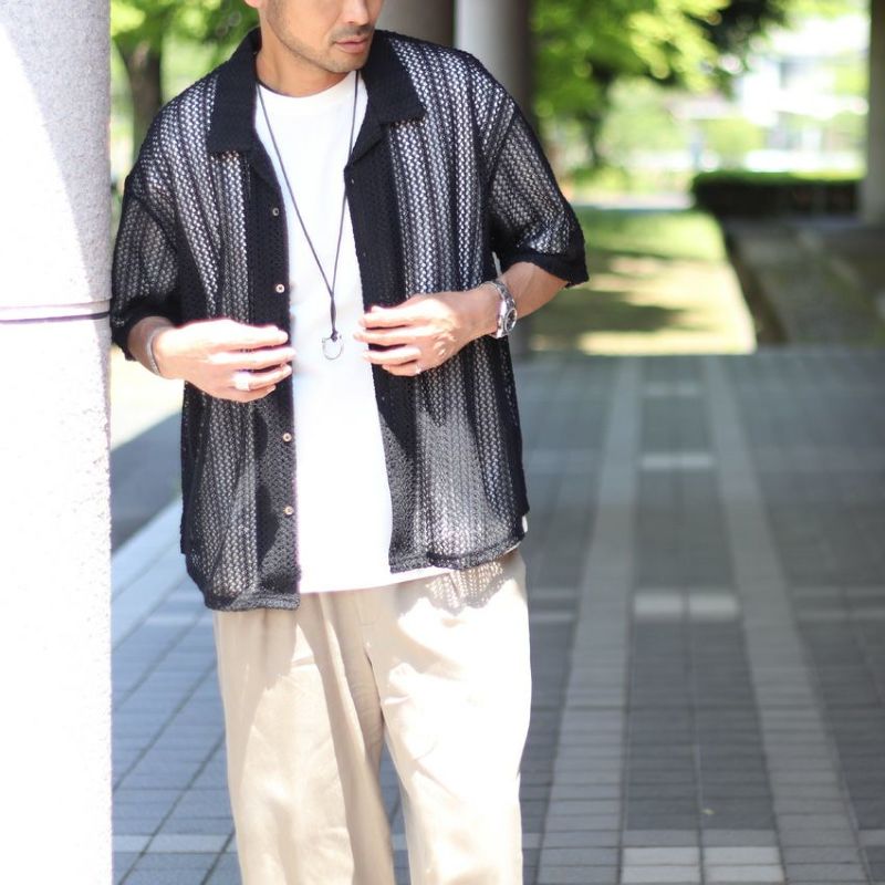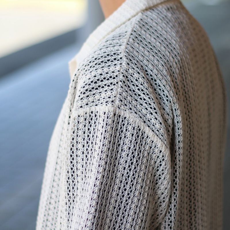 オリジナルの編み立てデザインが映えるメッシュ開襟シャツ。