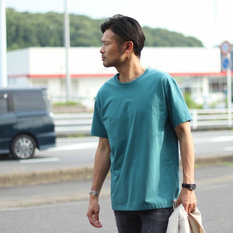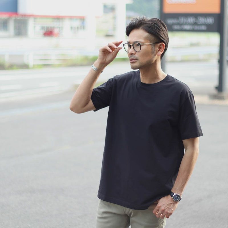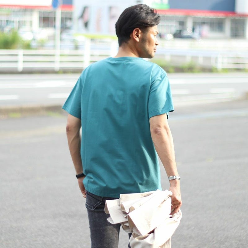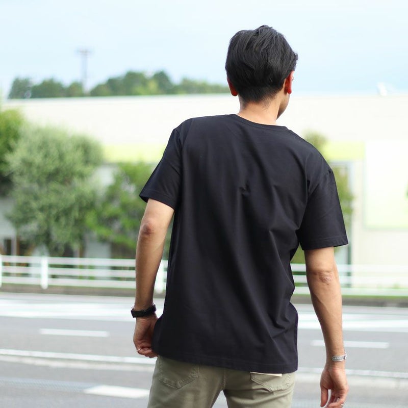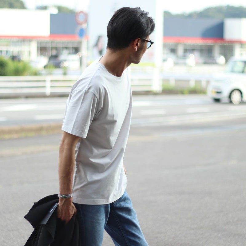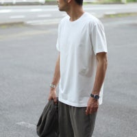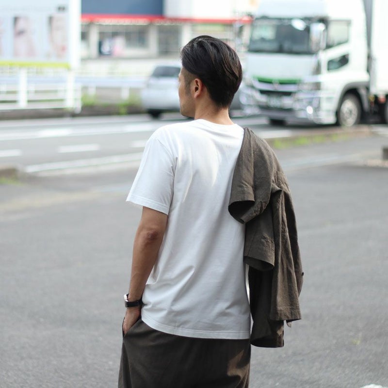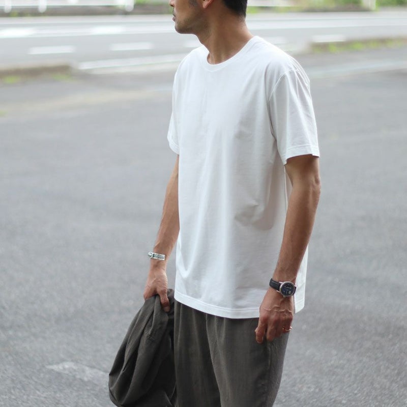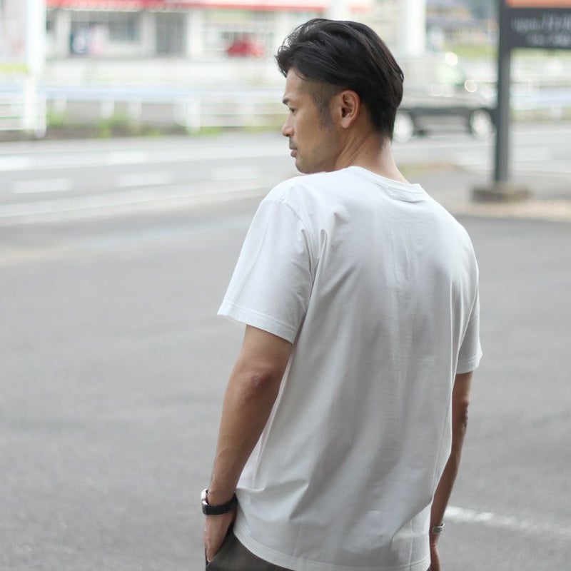 どのメーカーも今まで編むことが出来なかったハイゲージの生地の糸をしっかりと打ち込み、布帛のような表面感と独特のハリ感で、心地よい着心地と天竺ならではのナチュルなストレッチを併せ持つ極上な1着。