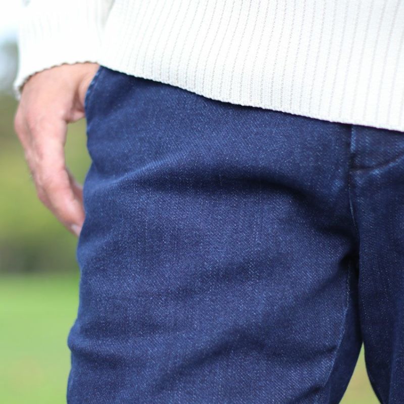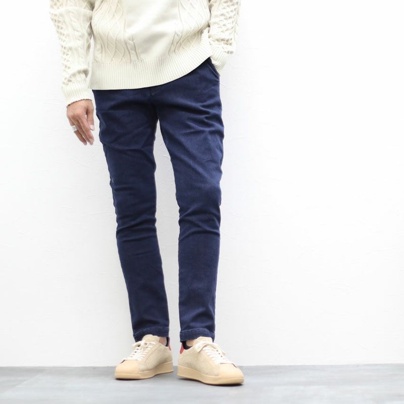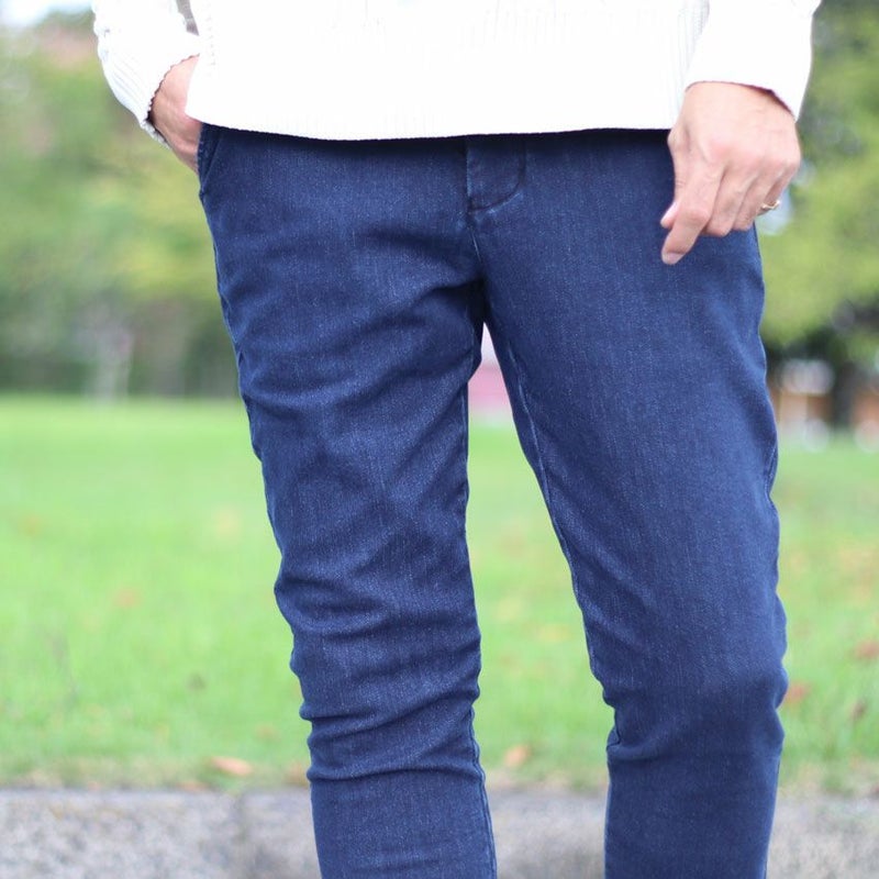 Shuna'lオリジナルのタイトフィットなデニムトラウザーパンツ。