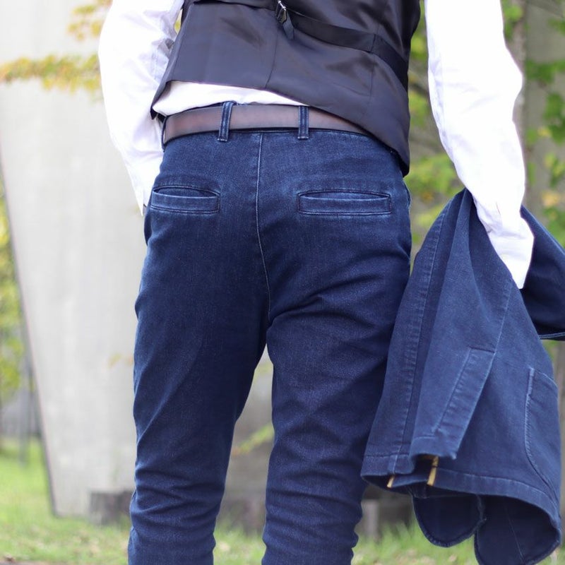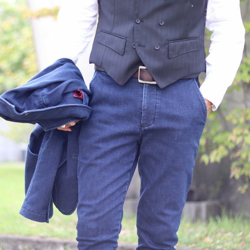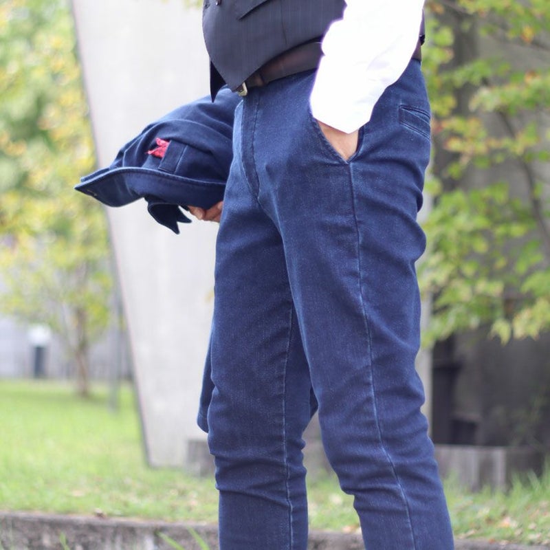カジュアルの代名詞的なデニム素材をスラックスに落とし込みました。