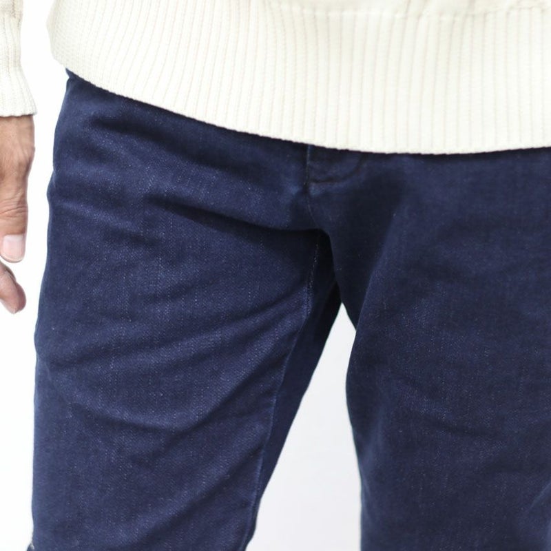 デニム本来の加工感を大事にし独自の加工や染めを施しヒゲ、アタリは品良く抑えめで艶感のあるデニム生地を採用。