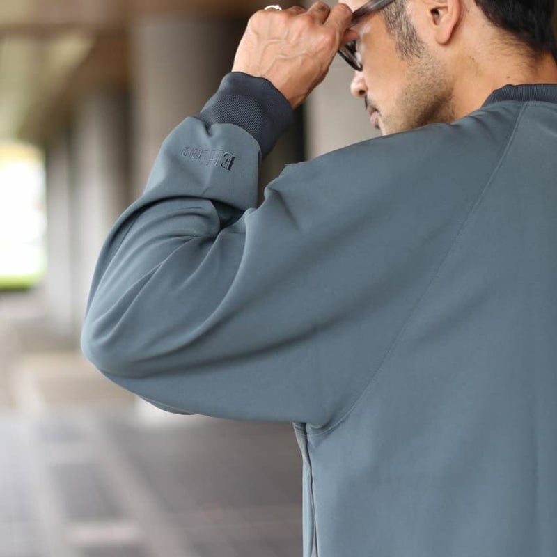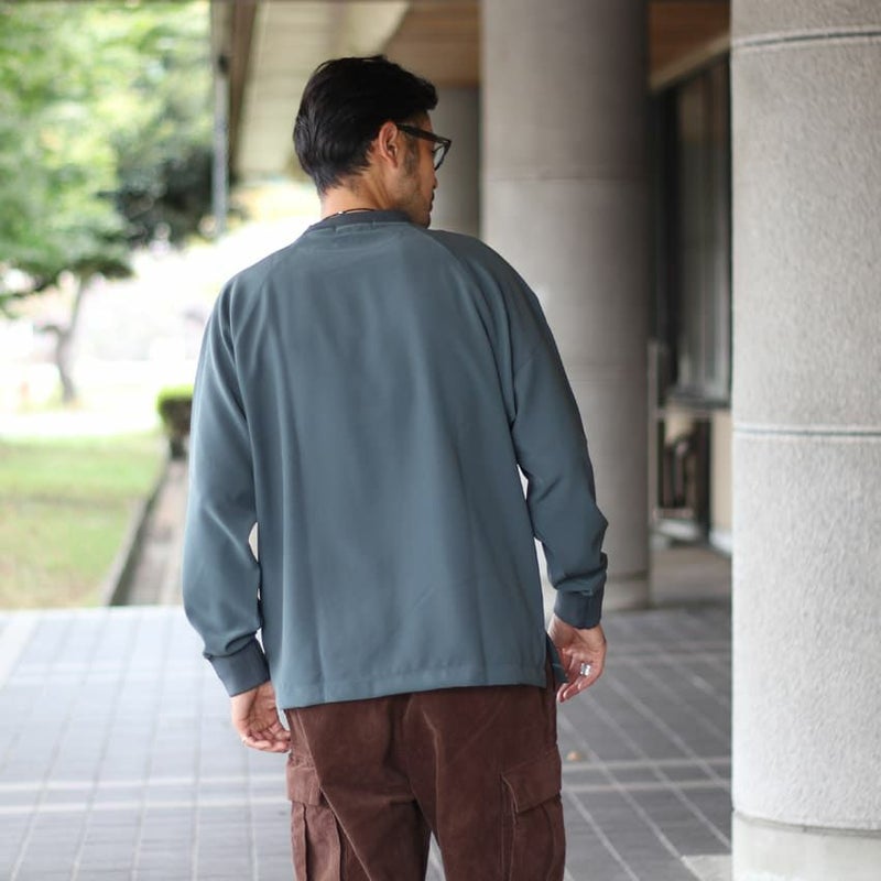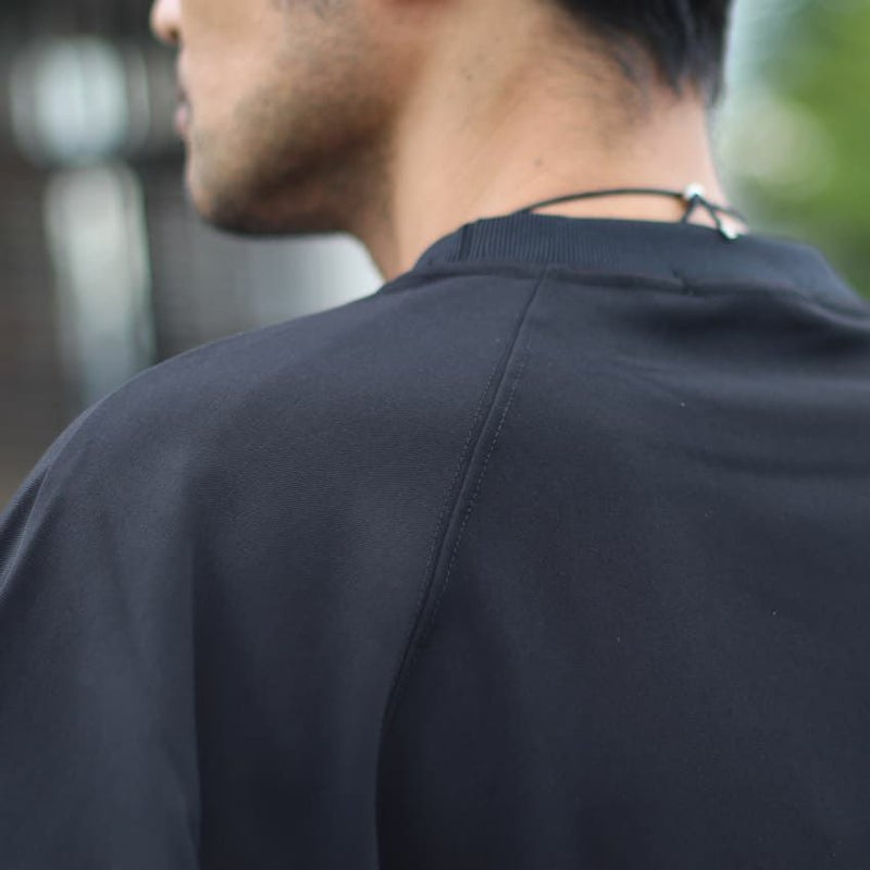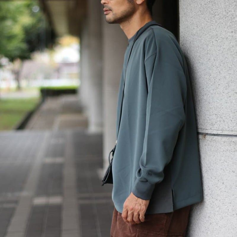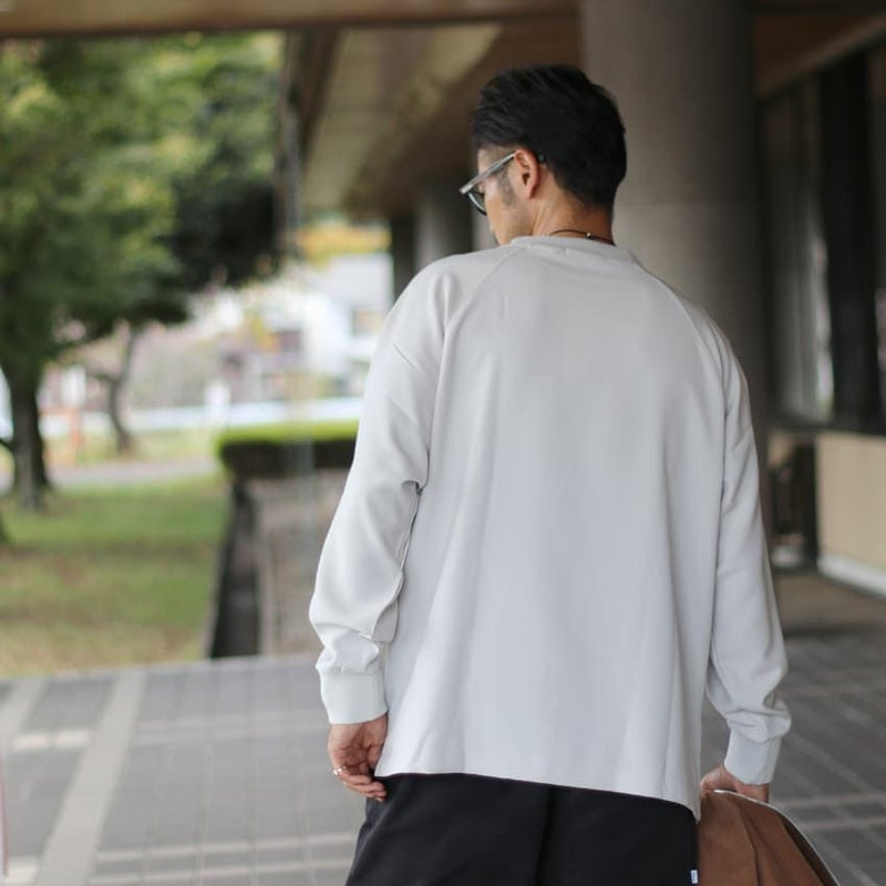 スリーブデザインは、前身頃はセットイン、背面をラグランスリーブにすることで、前後で見え方に変化を付けています。