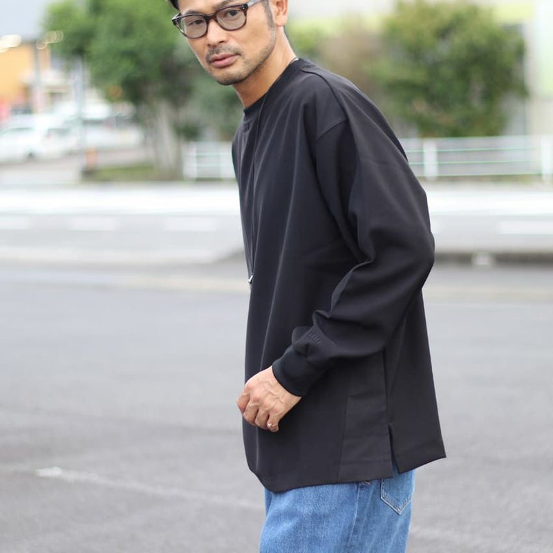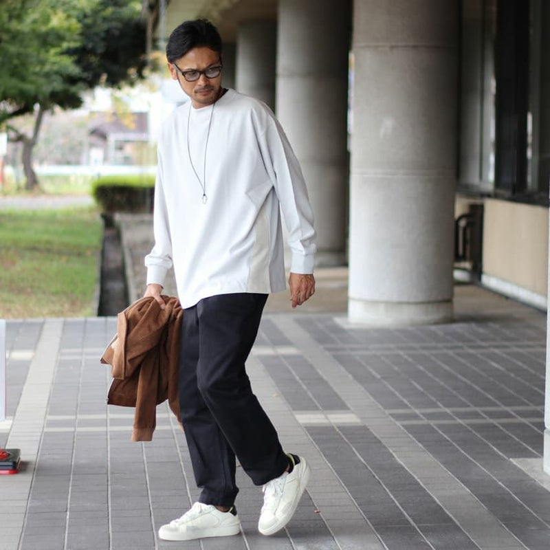 深いサイドスリットにとろみと落ち感を兼ね備えたロンtは、生地がドレープするので、お洒落な印象に格上げしてくれます。