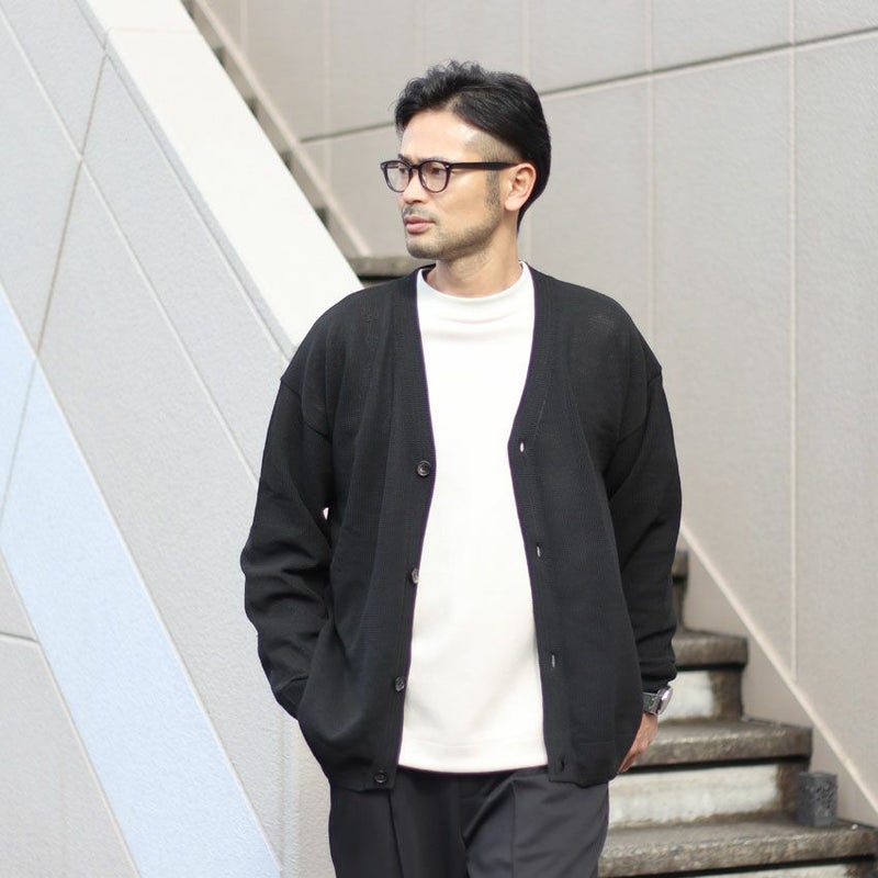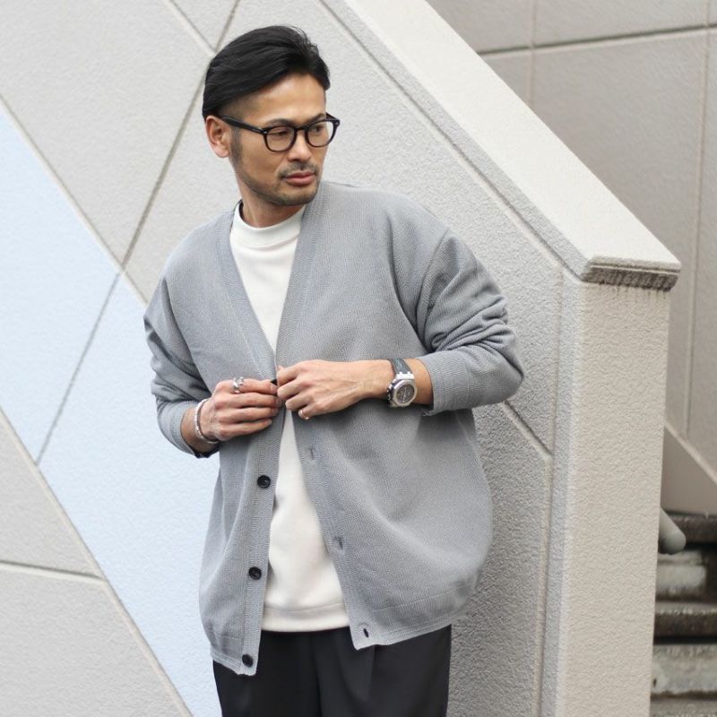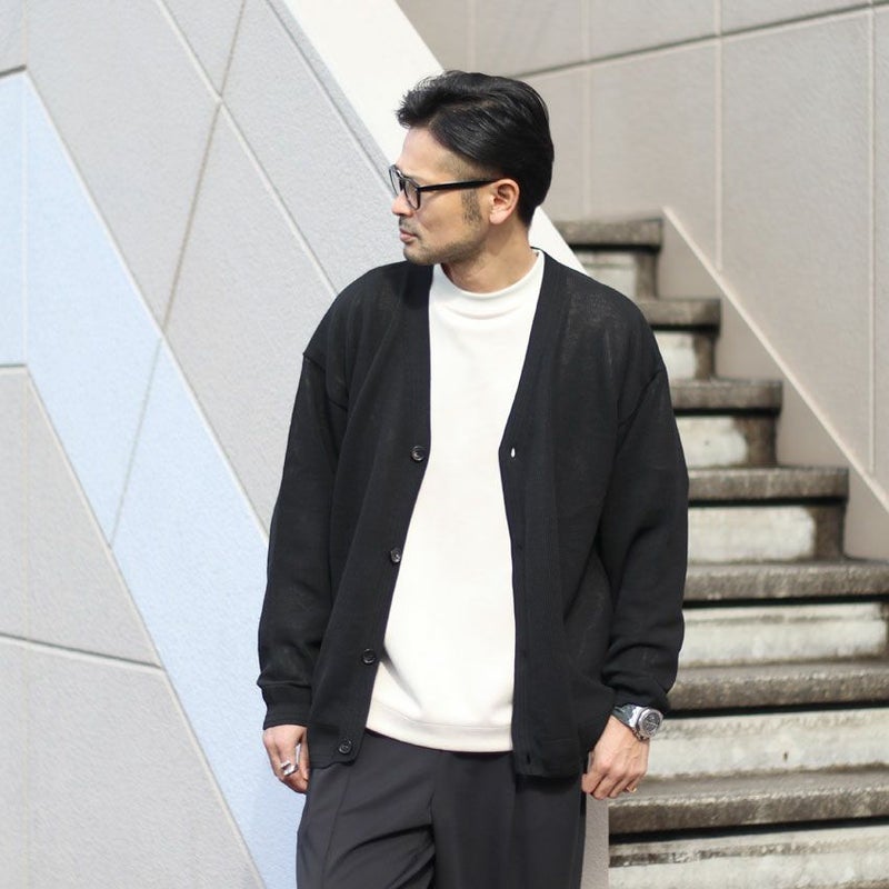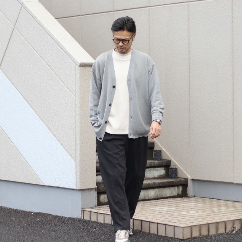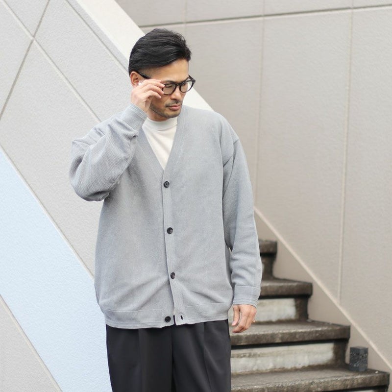 ウールやニットカーディガンと異なり、通気性が良く、蒸れない為、時間帯によって暑く感じる春や秋など中途半端な季節に大活躍する1着となっています。
