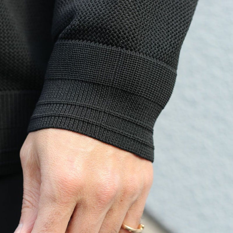 リサイクルポリエステルを使用した機能素材であるECOTECを使用したカーディガン。