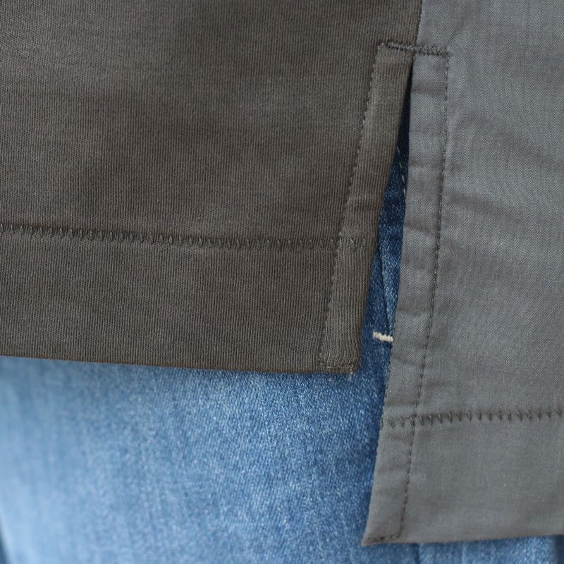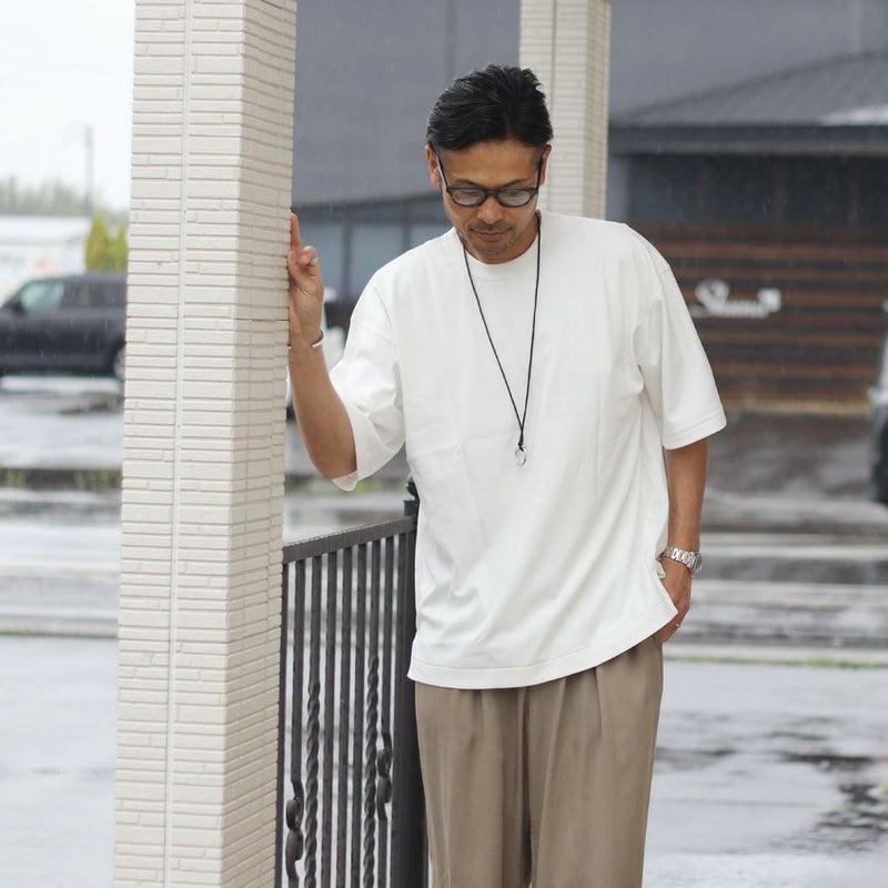 毛羽立ちをなくした滑らかな肌触りが特徴のドッキングカットソー。