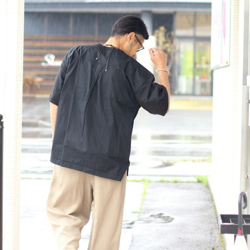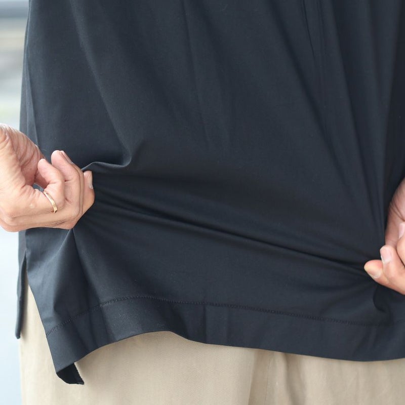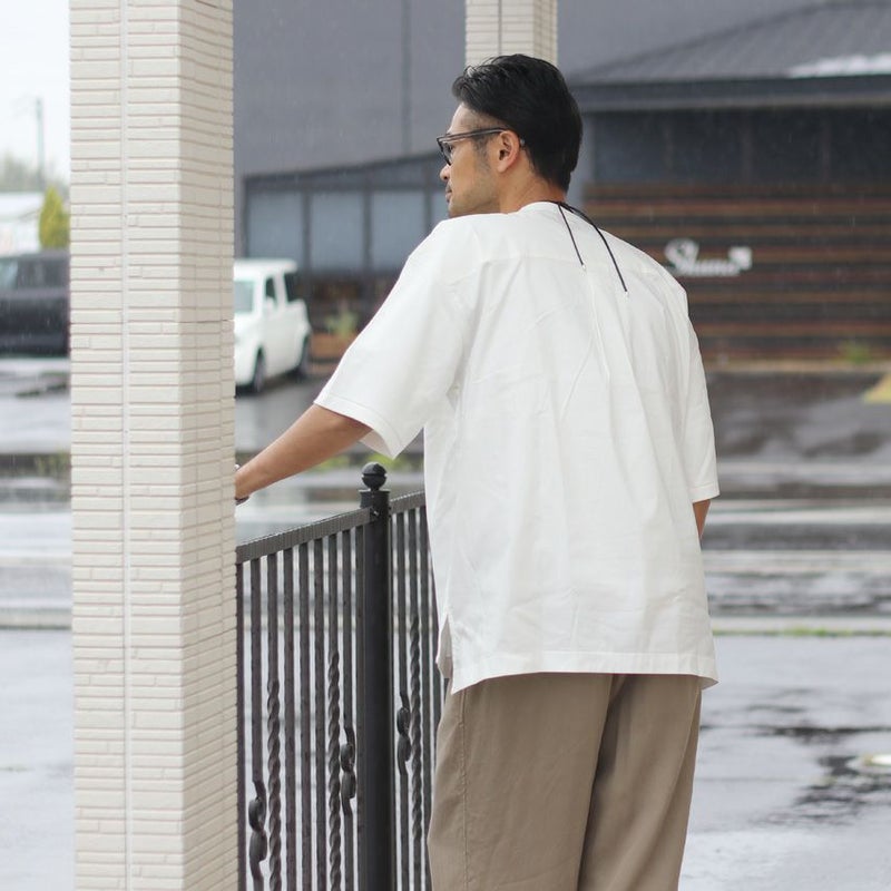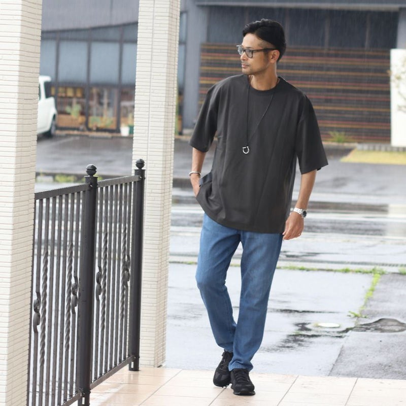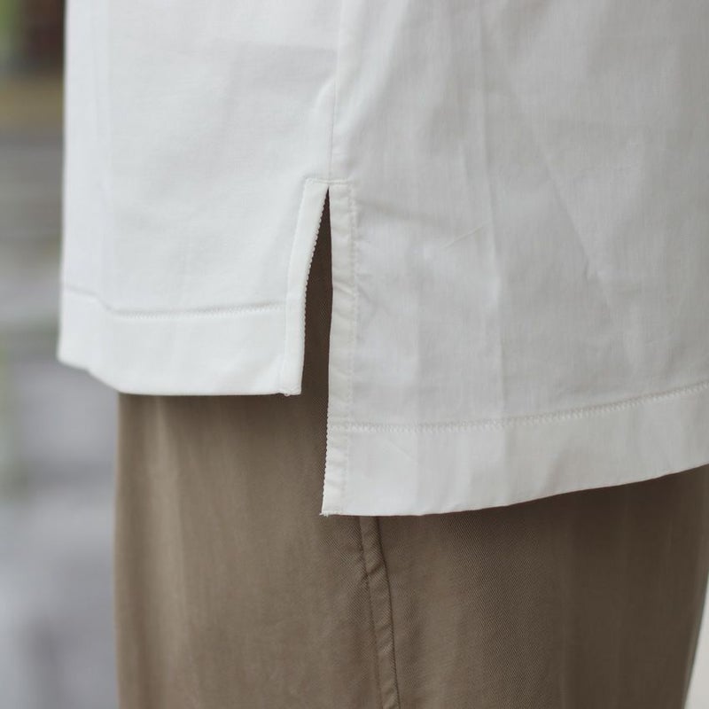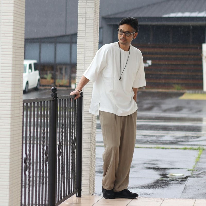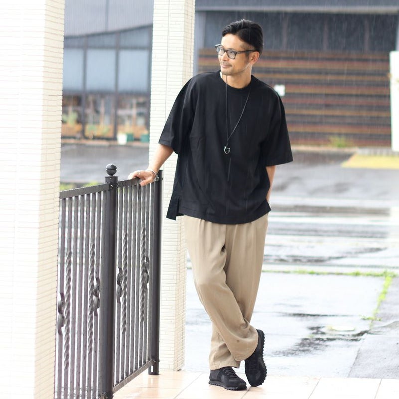 背面を布帛で切り替え、やや前後差を付けたデザインは、単色のトップスでも一枚で様になります。
