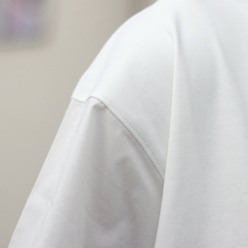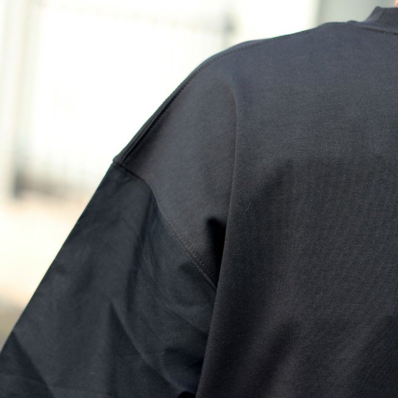 袖を布帛生地に切り替えたシンプルながら高いデザイン性を誇る1着。