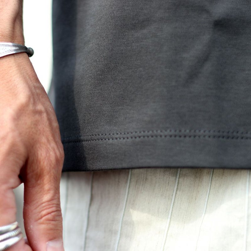 身頃にはつるっとしたポンチ素材を使い、肌触りが非常に良く極上な着心地を実現しています。
